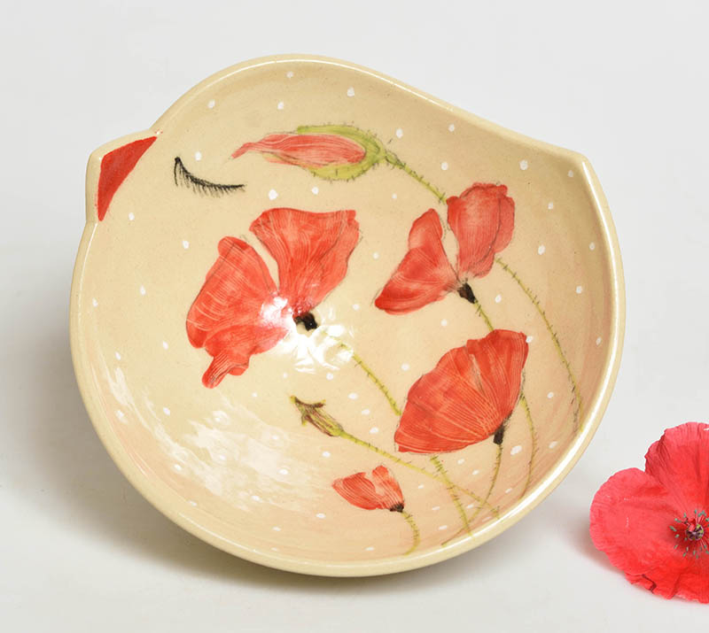 Keramická miska malá ptáček - vlčí máky
