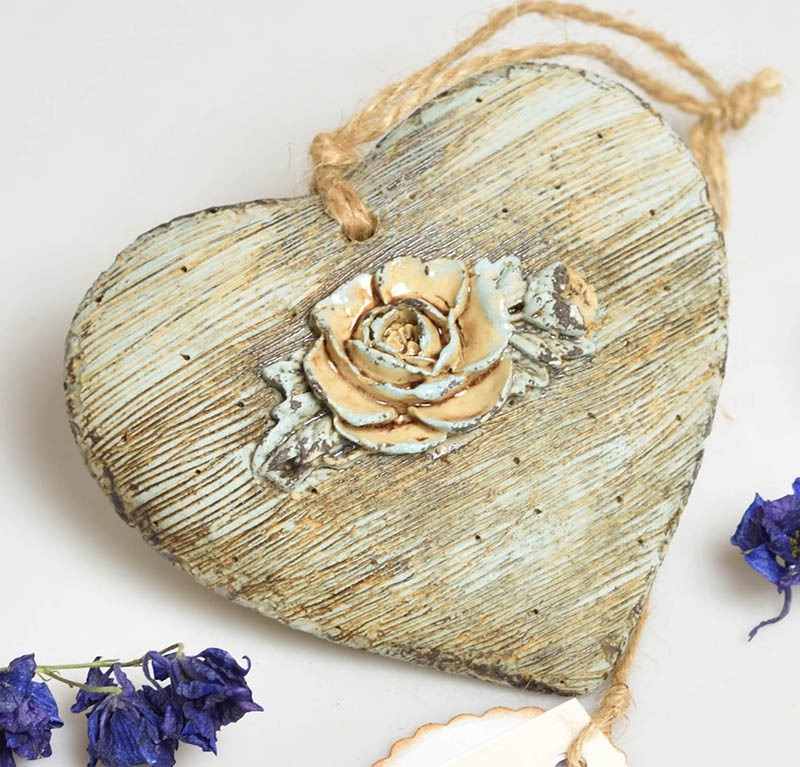 Keramické srdíčko s růžičkou