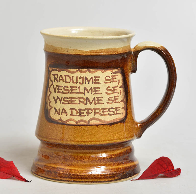 Keramický korbel s nápisem