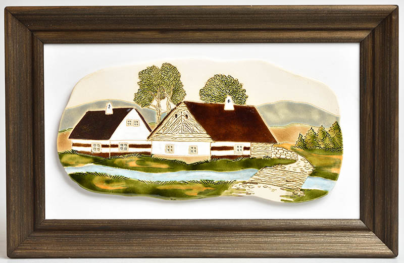 Keramický obrázek v dřevěném rámečku chaloupky