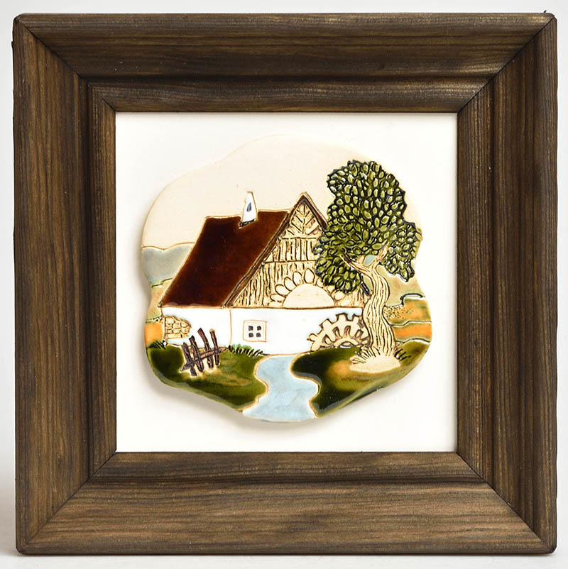 Barevný keramický obrázek je nalepen v dřevěném rámečku s motivem malebné chaloupky dodá domovu svěžest a útulnost. Obrázek je ručně vyrobený a malovaný určen k zavěšení na zeď.