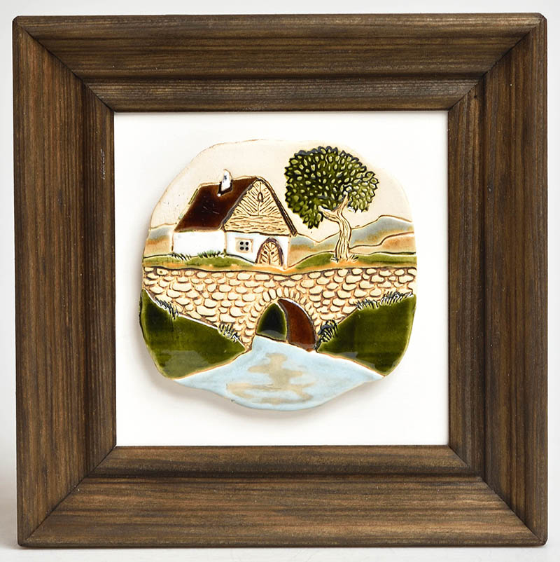 Barevný keramický obrázek je nalepen v dřevěném rámečku s motivem malebné chaloupky dodá domovu svěžest a útulnost. Obrázek je ručně vyrobený a malovaný určen k zavěšení na zeď.