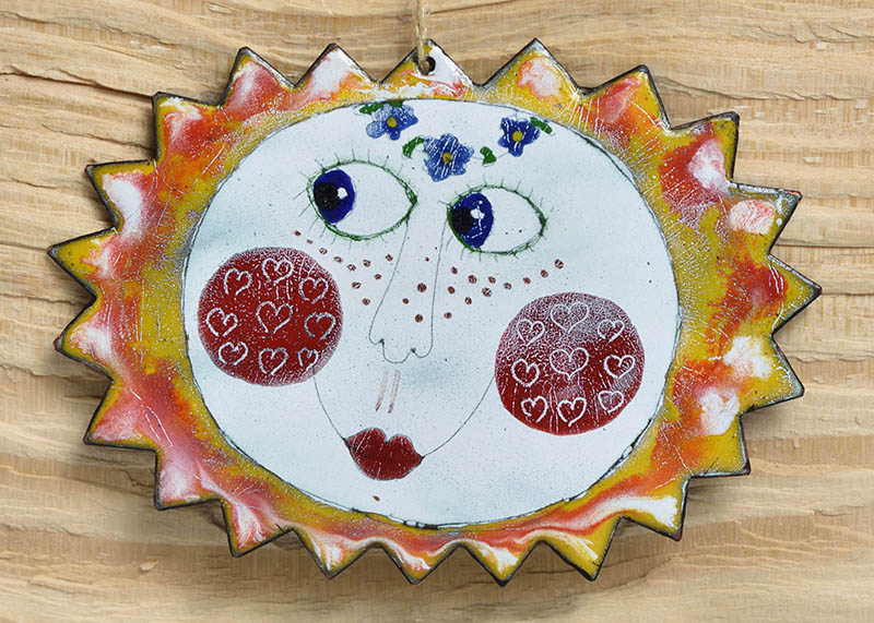 Originální smaltované sluníčko je kompletně ruční práce - ručně malované, vypalované v několika vrstvách v peci. Pro krásnou dekoraci domova.