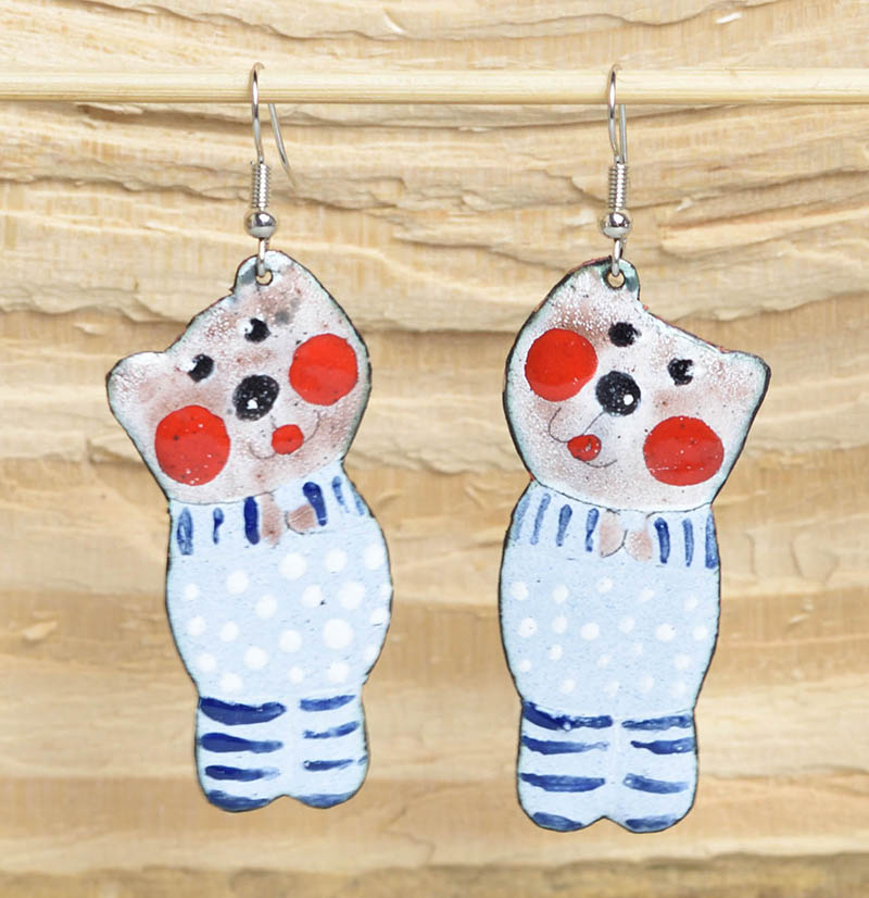 Originální smaltované náušnice jsou kompletně ruční práce - ručně malované, vypalované v několika vrstvách v peci, závěsy u naušnic jsou z chirurgické oceli, součástí dodávky jsou plastové zarážky. Tyto naušnice jsou vhodné na každodenní nošení i slavnostní okamžiky.