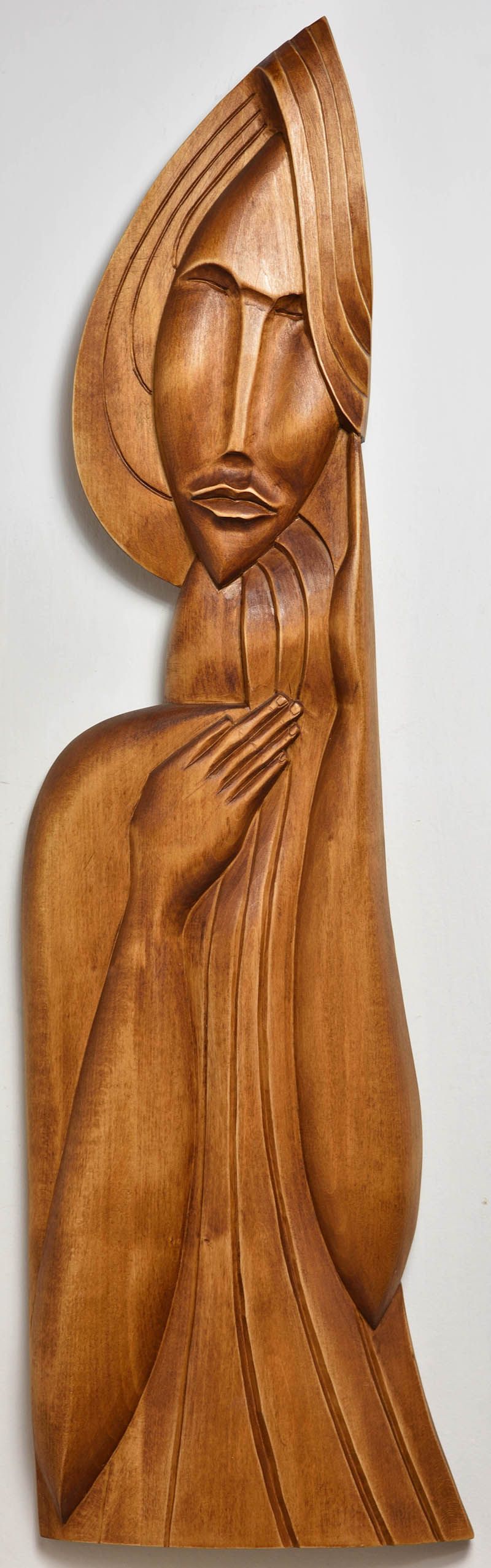 Ručně vyřezávaná dřevěná plastika z lipového dřeva na zavěšení na zeď.
