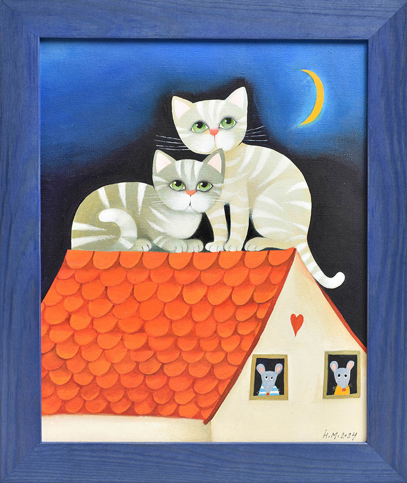 Hana Münsterová, Kočičí dostaveníčko - olej na sololitu