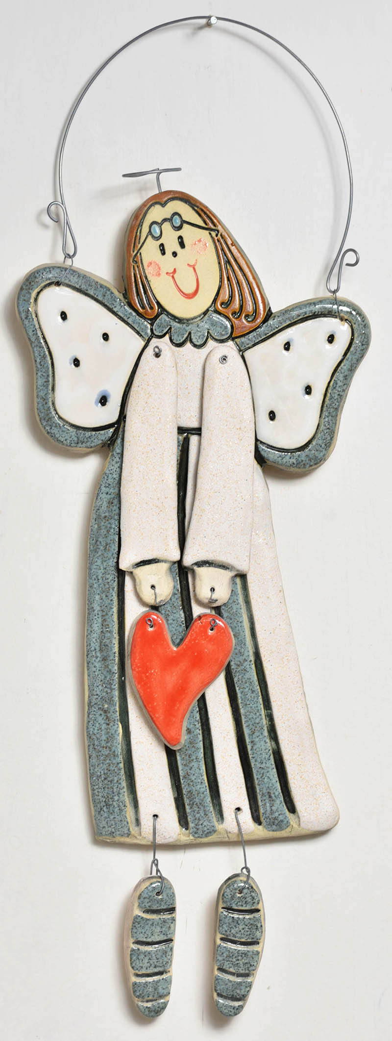 Keramický anděl se srdíčkem je ručně modelovaný z keramické hmoty. Anděl je určen k zavěšení na zeď, krásně ozdobí váš interiér i exteriér.