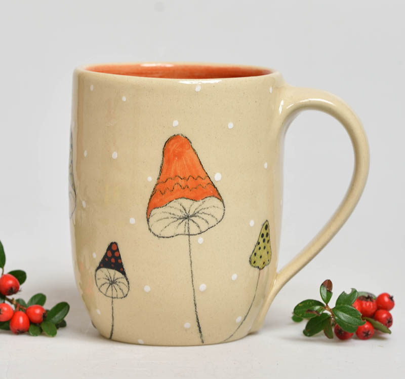 Ručně točený a malovaný keramický hrnek s motivem hub je skvělý na čaj, kakao i studené nápoje... Je vhodný jak pro ohřev v mikrovlné troubě tak i pro mytí v myčce.
