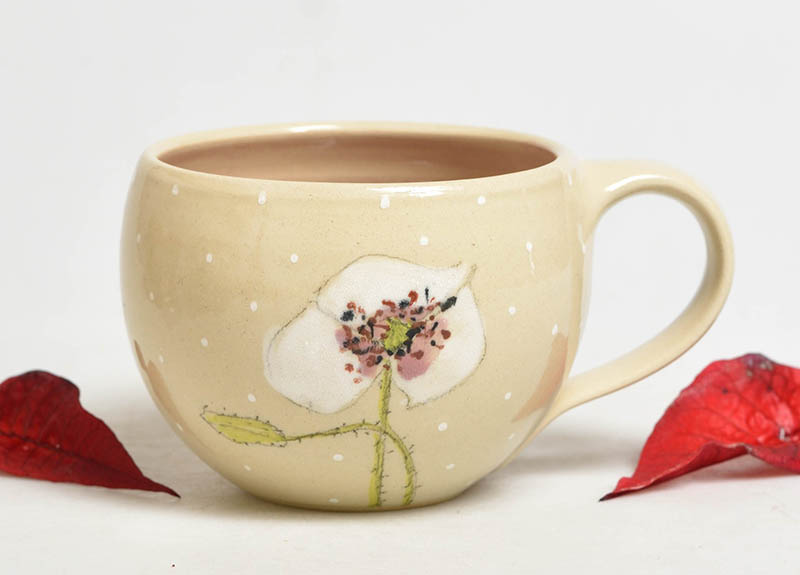 Ručně točený a malovaný keramický hrnek s vlčími máky vhodný na čaj, kávu nebo kakao.... Je vhodný jak pro ohřev v mikrovlné troubě tak i pro mytí v myčce.