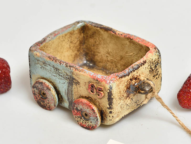 Originální keramický vozík pro zajímavou dekoraci vašeho bydlení. Vozík je propracovaný do nejmenších detailů je vhodný nejen jako dekorace, ale i pro běžné použití na drobné ovoce, bonbónky, oříšky..........Keramický vozík je ručně modelovaná česká keramika.