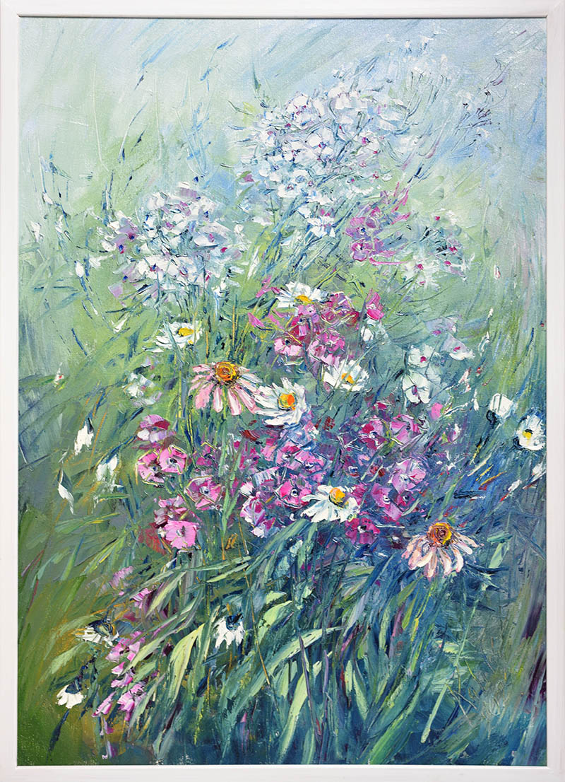 Olej na plátně "Plaménky s třapatkou" od Pavla Kabeláče, v rámu.